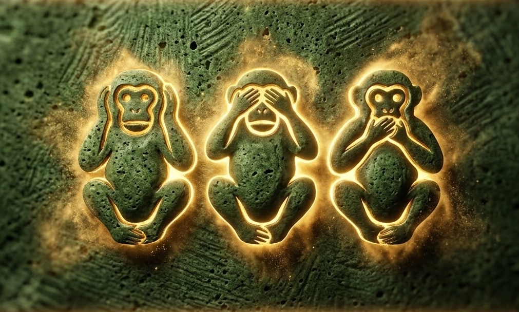 Nikko Sanzaru — 壁に三猿の影が浮かぶ